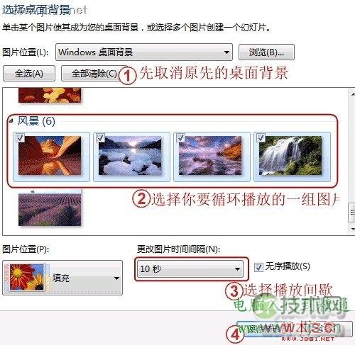 坏消息,Windows 7家庭普通版中“桌面墙纸幻灯”这个功能没有。IT技术网