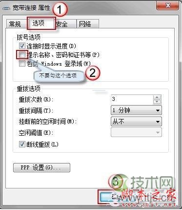 之后在选项标签中,网连确认提示名称、统中密码、何设号上凭证等这个选项前没有打勾,置开然后,点击确定,如下图: