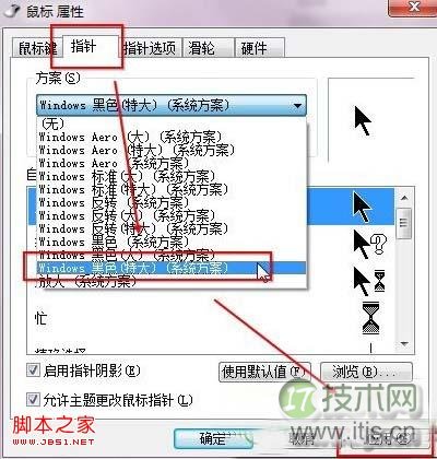 然后我们点击“指针方案”,这里就可以选择鼠标的样子了,选择完毕后应用即可,当然大家也可以选择自己下载的样式,请选择浏览找到即可。