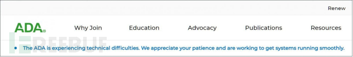 网络攻击不仅影响到 ADA 的网站,也对使用 ADA 在线服务注册账户或支付会费的组织产生了巨大影响,例如纽约、弗吉尼亚和佛罗里达州的牙科协会。