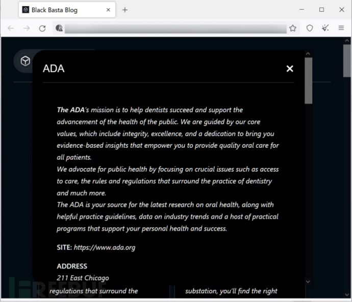 参考文章:https://www.bleepingcomputer.com/news/security/american-dental-association-hit-by-new-black-basta-ransomware/